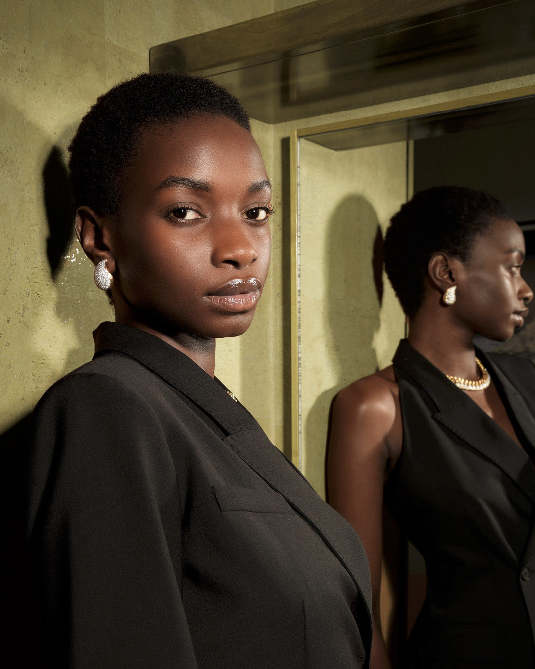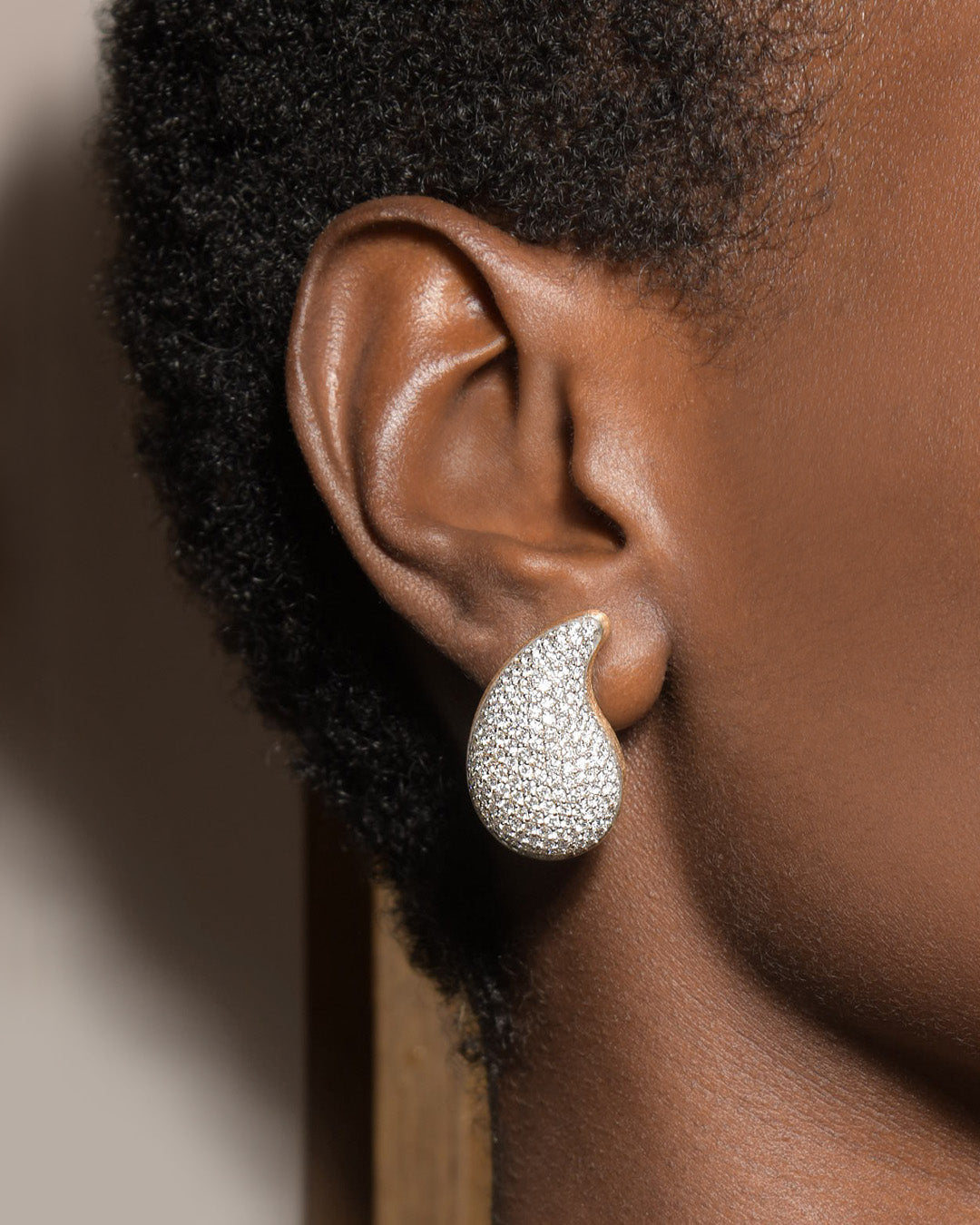 Its components can in fact be used in 3 ways: with the diamonds drop in the front of the lobe and the gold one in the back, or vice versa, highlighting the wonderful golden element, or else you can use the diamonds drop by itself.