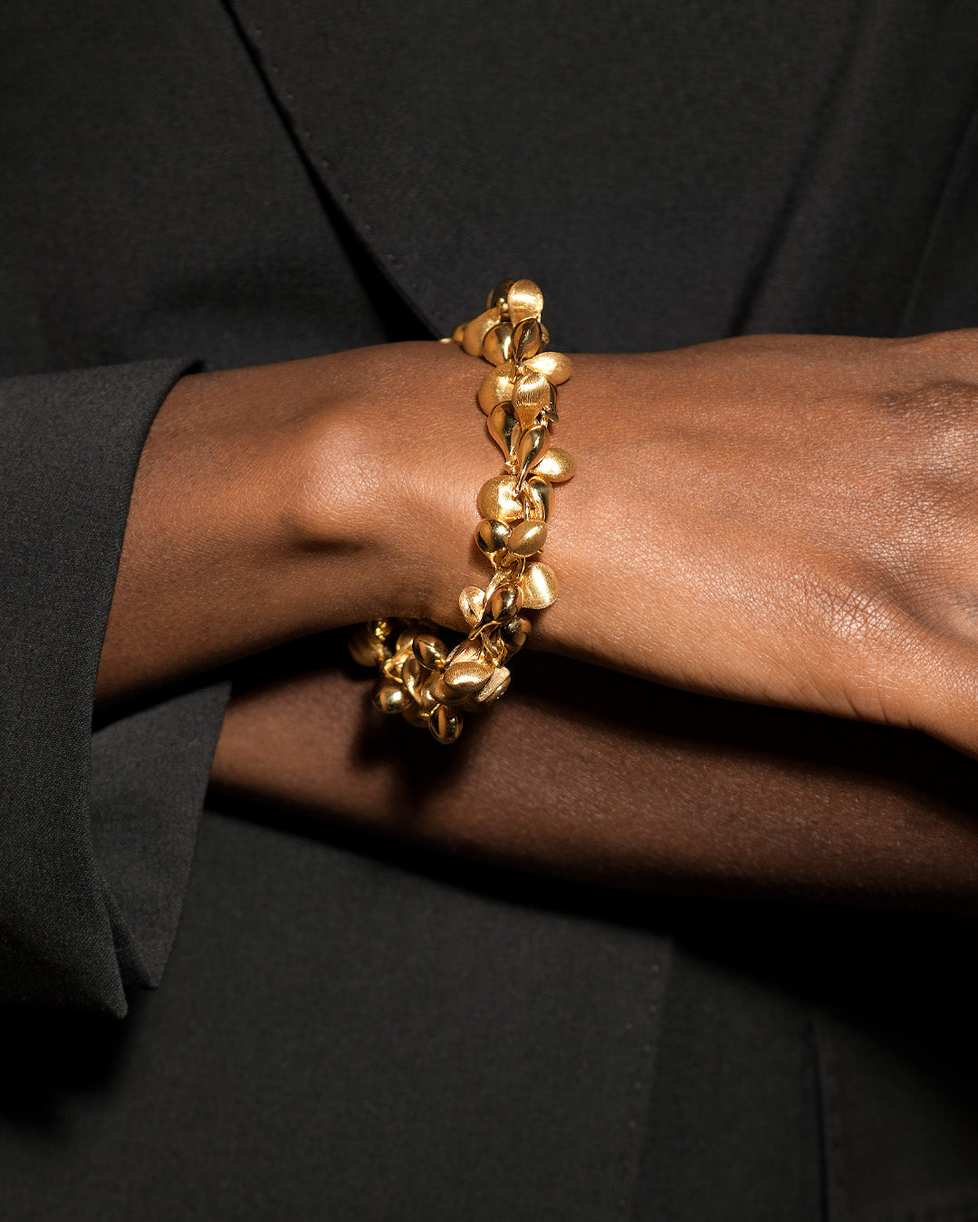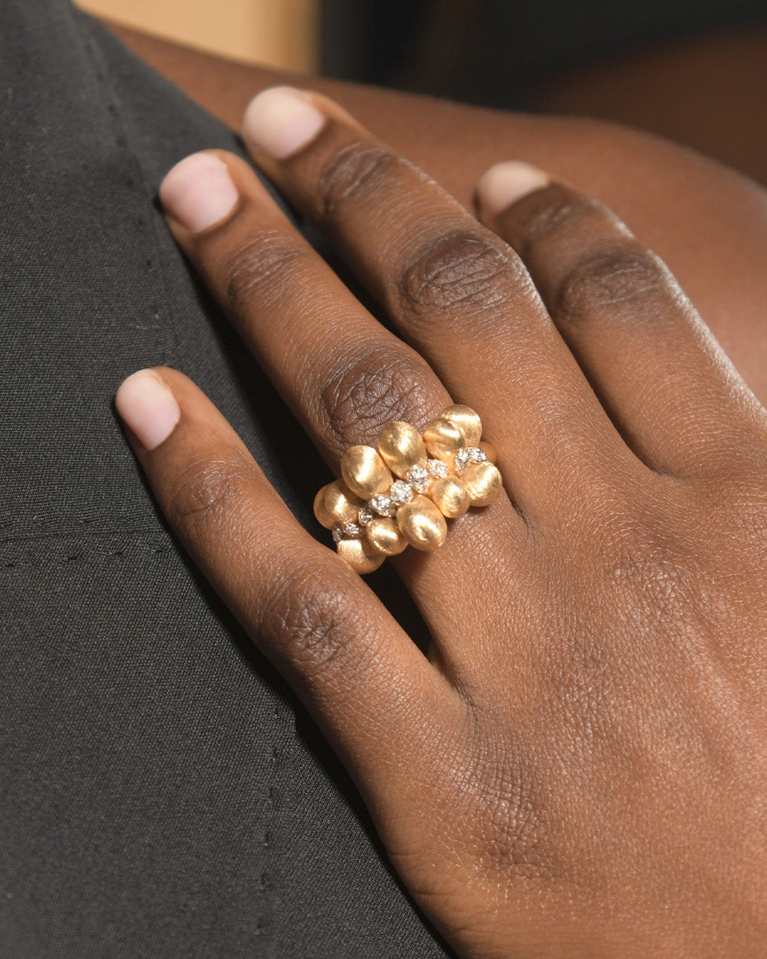 One of is' masterpieces, cashmere earrings masterfully celebrate the encounter between luxury and versatility. A 18 kt yellow gold and diamonds jewel entirely hand-engraved with the ancient burin technique, to be explored and worn with taste.